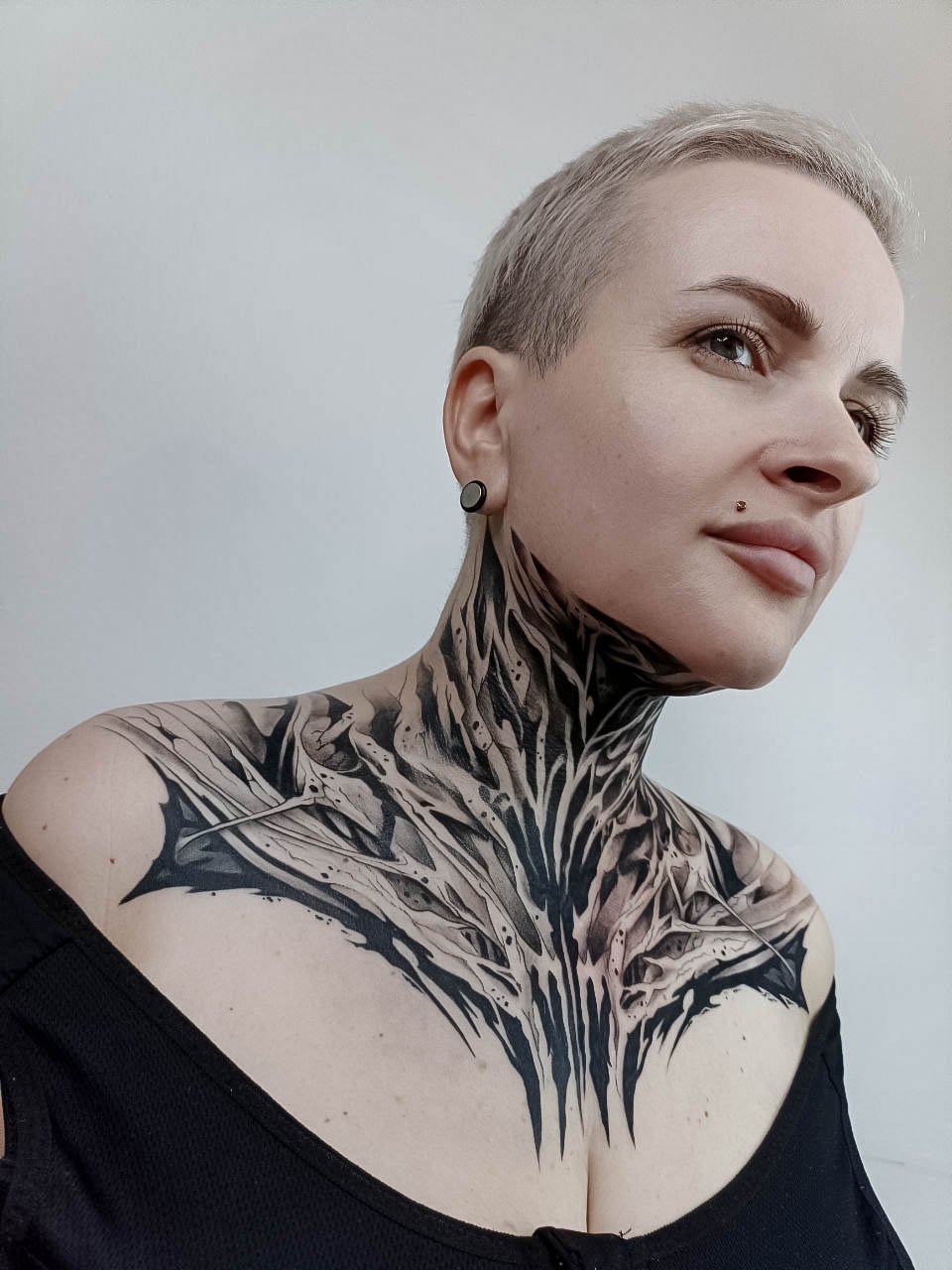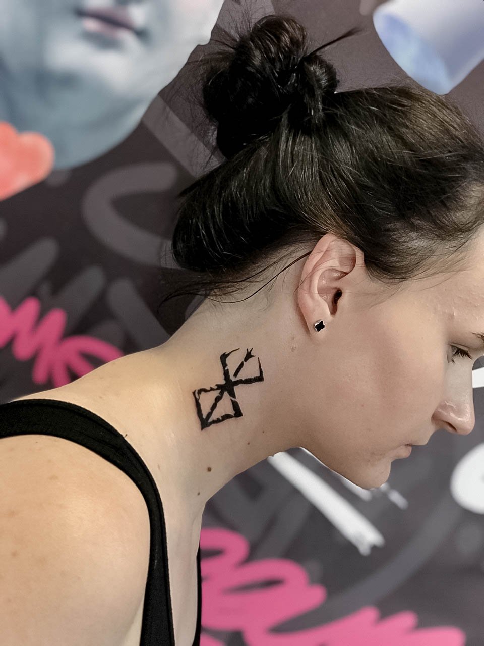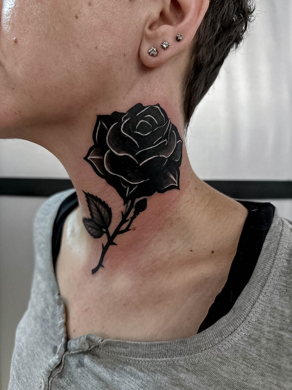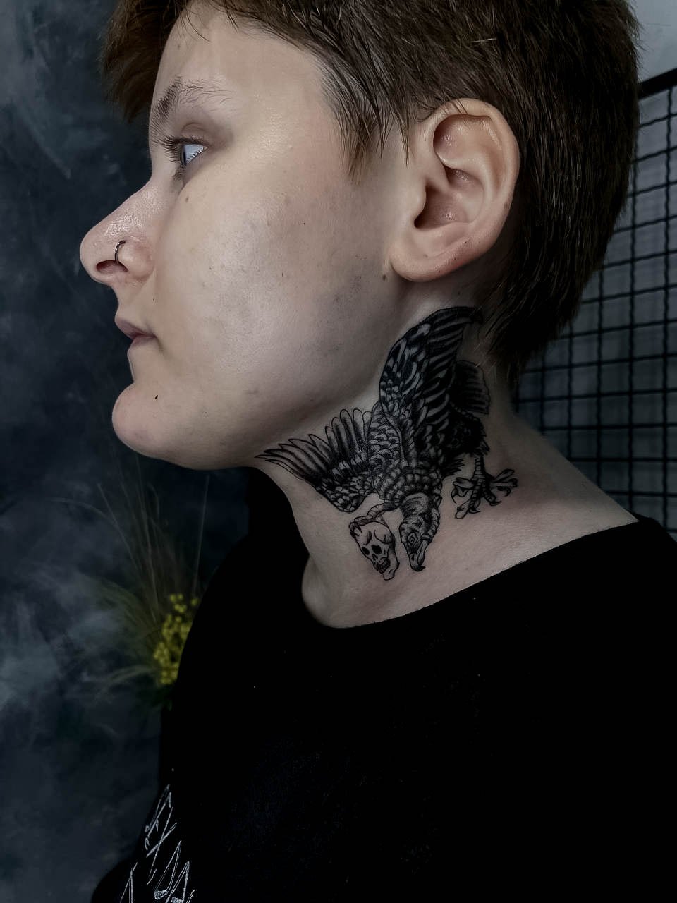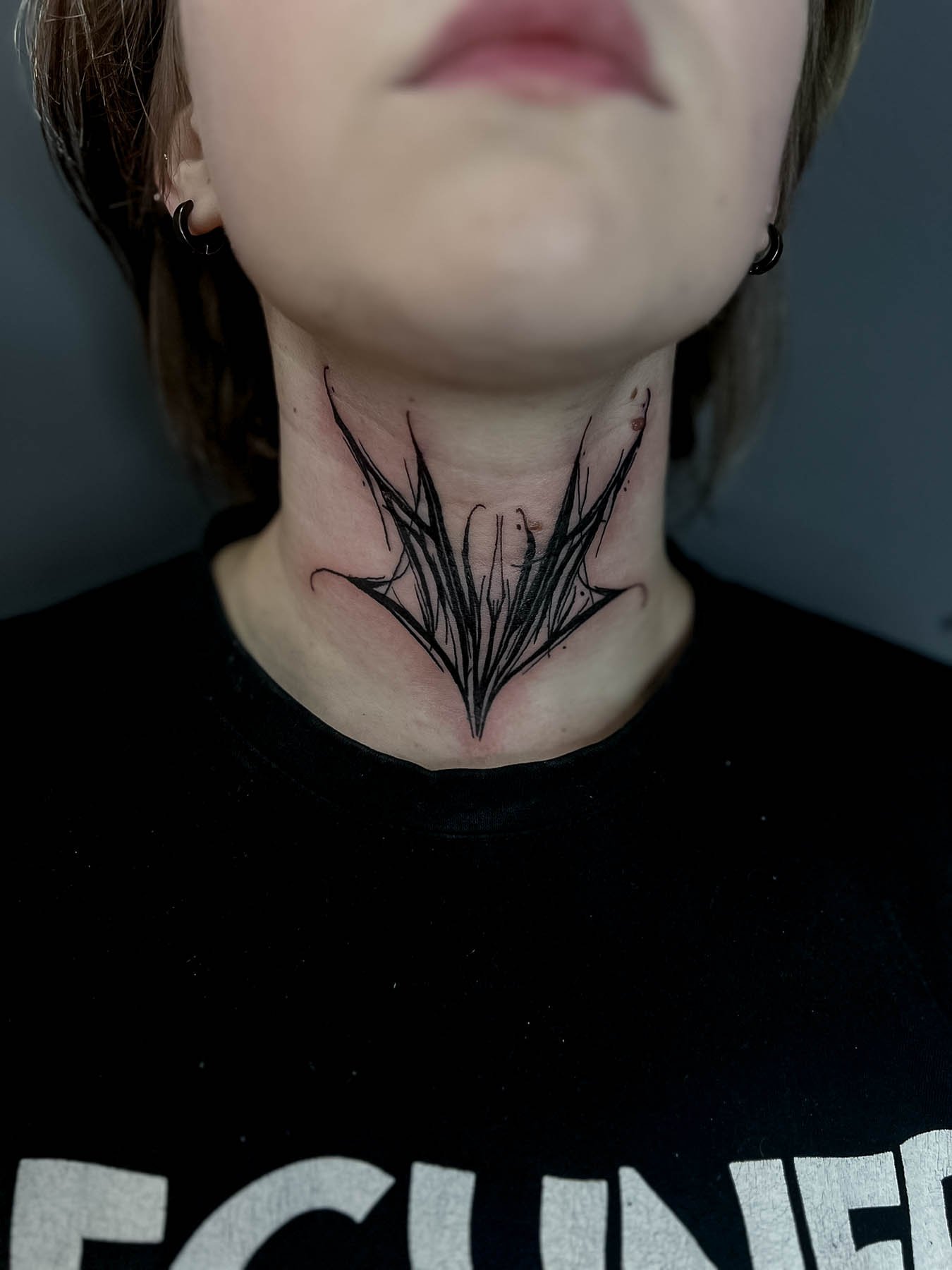 Ein Hals-Tattoo zieht sofort alle Blicke auf sich und wird zu einem kraftvollen, ausdrucksstarken Akzent.