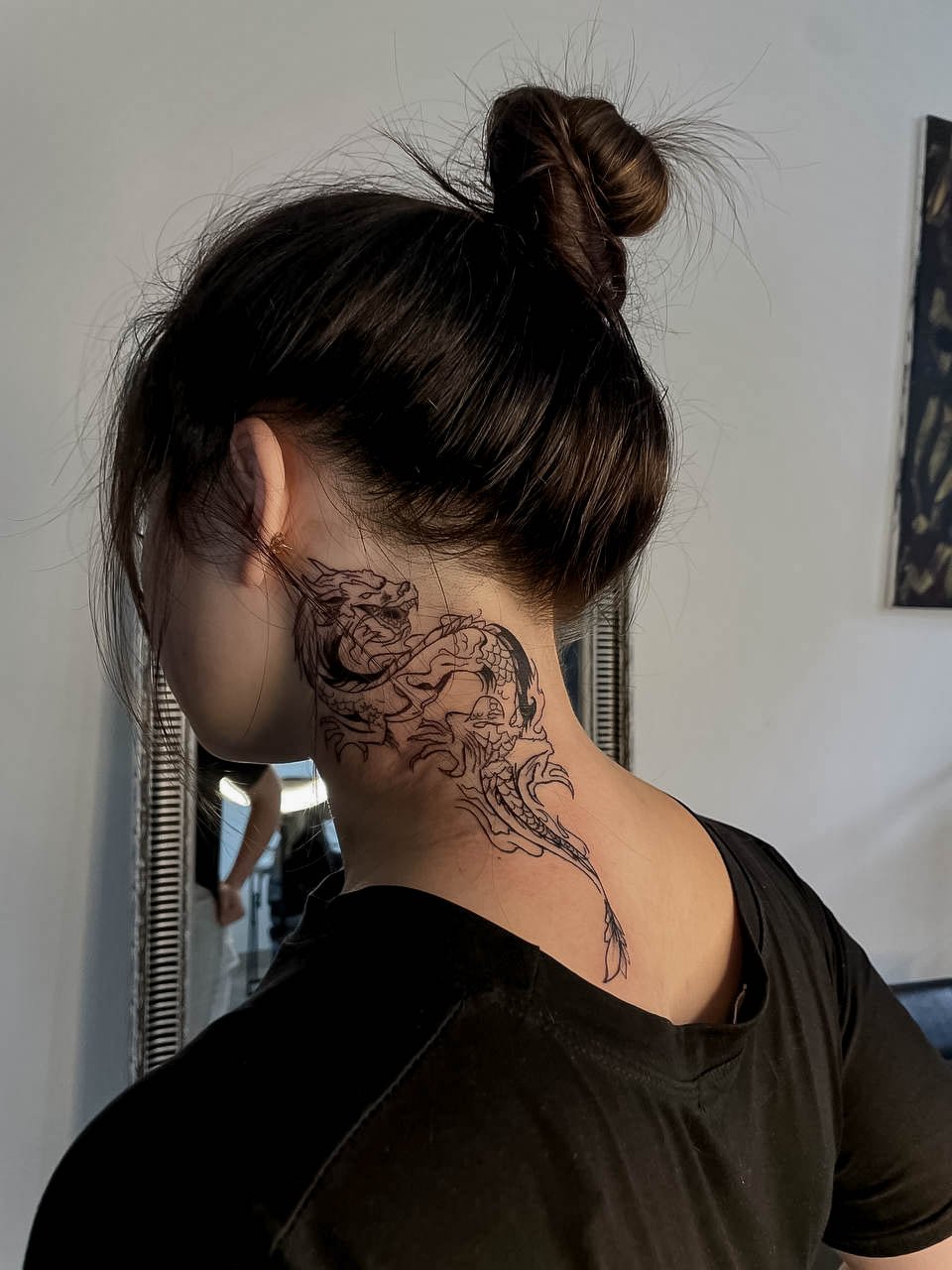 Es signalisiert: "Ich stehe gerne im Mittelpunkt!" Diese Art von Tattoo eignet sich perfekt für Frauen, die sich von der Masse abheben und ihrem Stil eine einzigartige Note verleihen möchten. Die Positionierung des Tattoos am Hals kann variieren und eröffnet somit vielfältige kreative Möglichkeiten. Ob vorne, seitlich oder hinten – jede Platzierung ermöglicht ein einzigartiges Design, das Ihre Individualität betont und sich harmonisch in Ihr Gesamtbild einfügt.