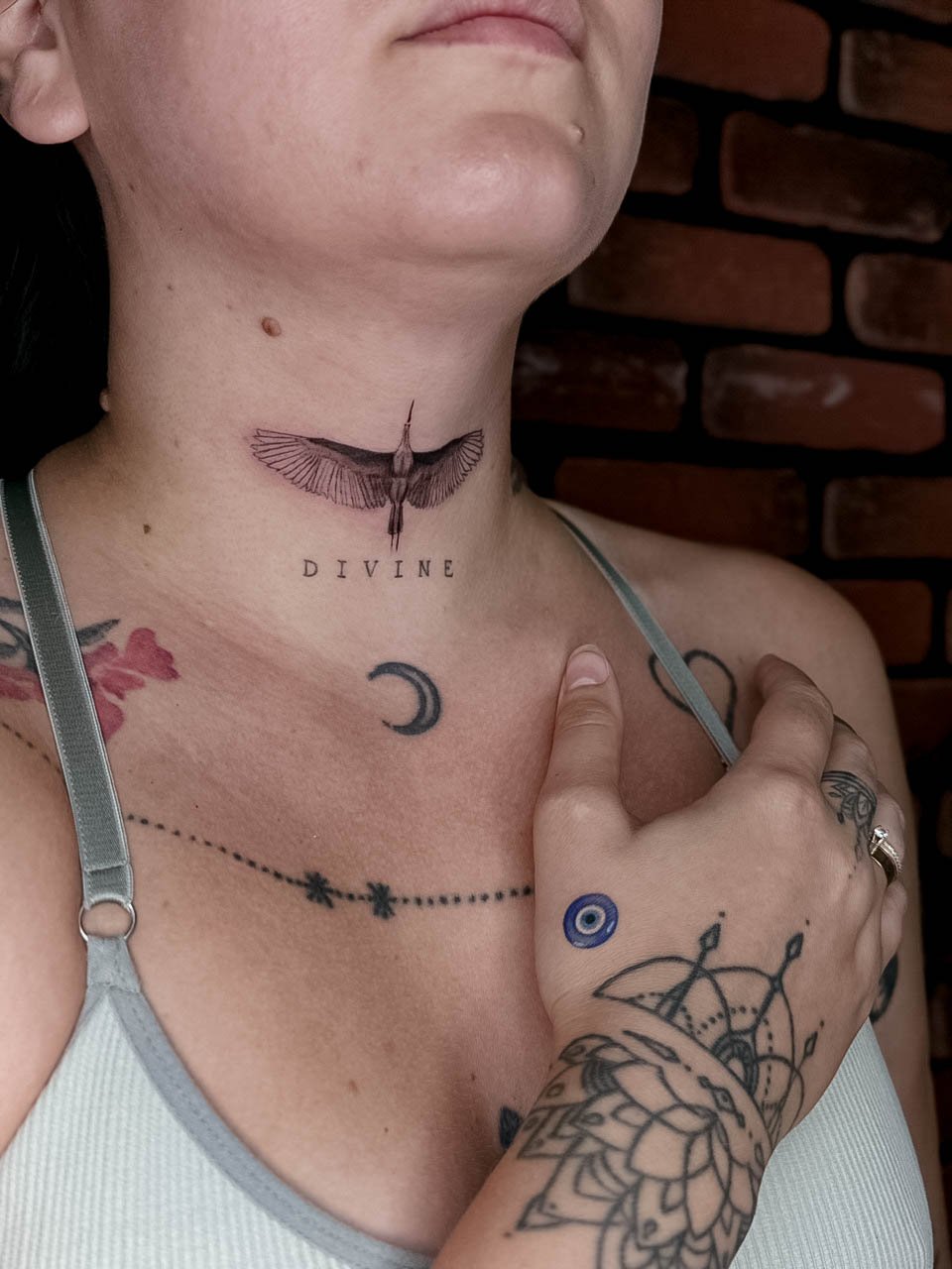 Hals-Tattoos bei Frauen gewinnen zunehmend an Beliebtheit.