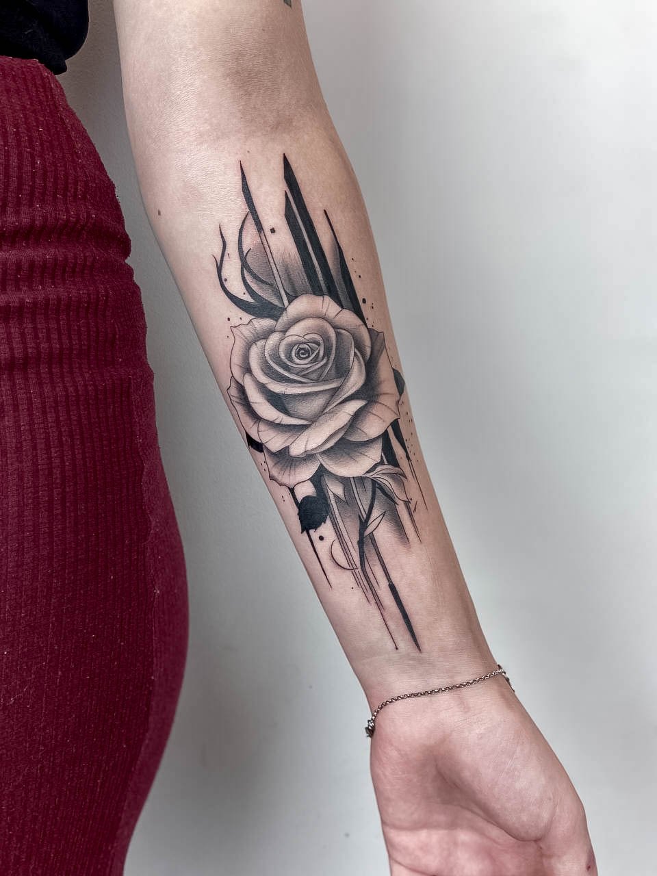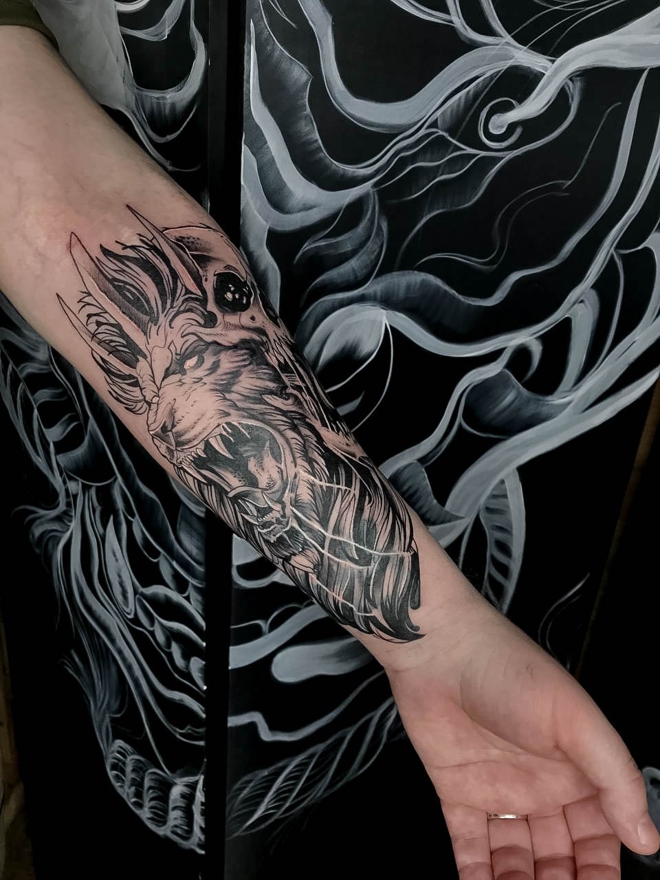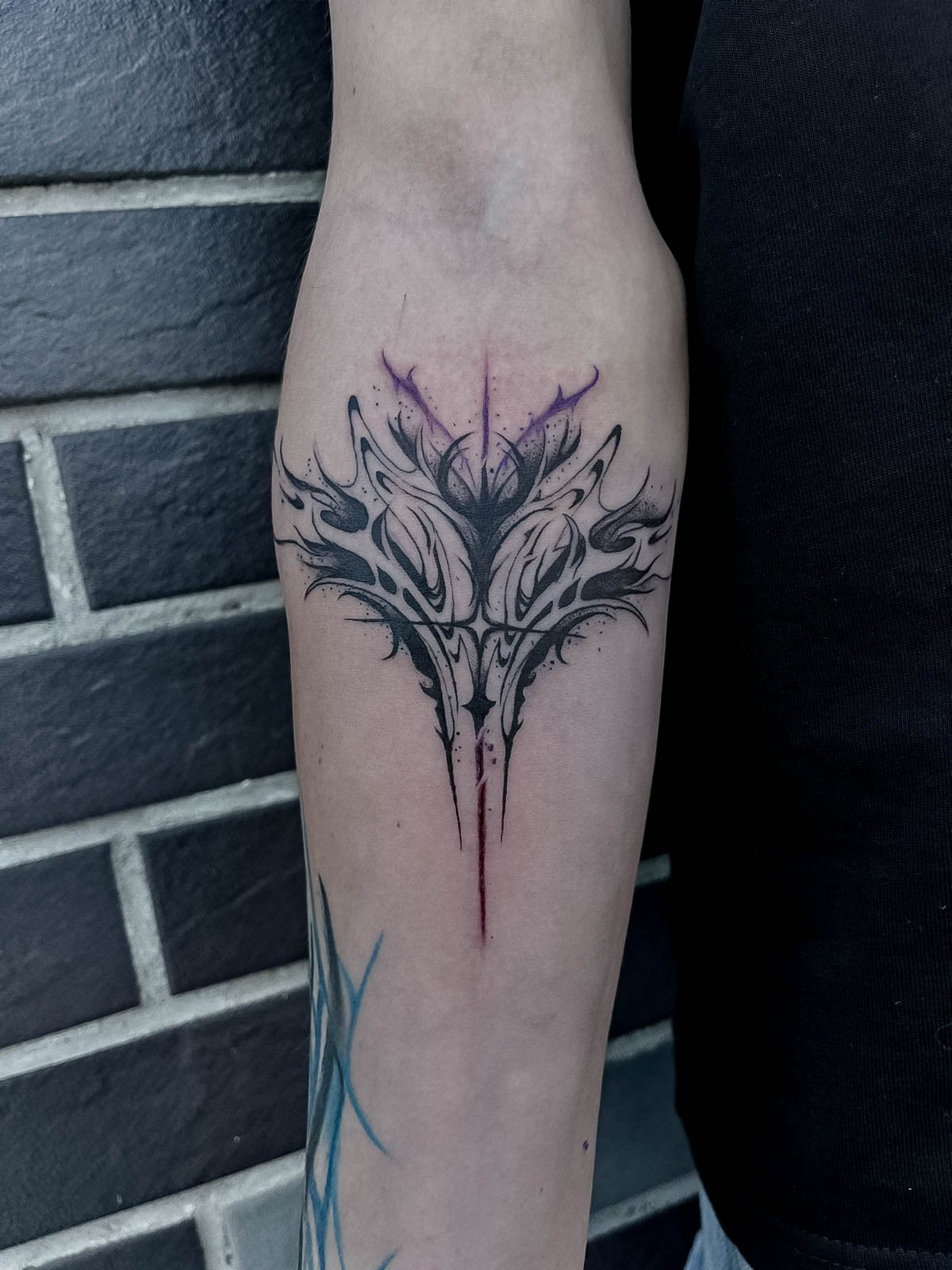 Dies liegt daran, dass die schwarze Farbe die Dunkelheit und Dramatik, die in diesem Stil so wichtig sind, am besten wiedergibt. Moderne Künstler können jedoch rote, violette oder dunkelblaue Farbtöne hinzufügen, um der Tätowierung noch mehr Tiefe und Ausdruckskraft zu verleihen.