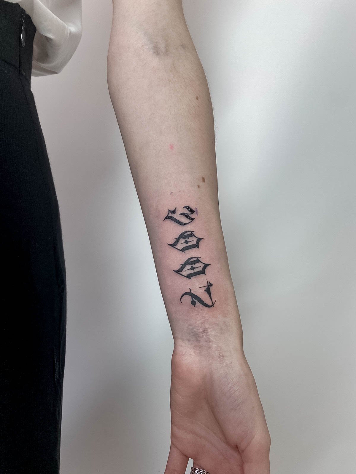 - In gotischem Stil verfasste Inschriften sind eine weitere Möglichkeit, seine Individualität auszudrücken. Die geschwungenen Linien und scharfen Winkel der gotischen Buchstaben verleihen der Tätowierung Eleganz und Geheimnis.