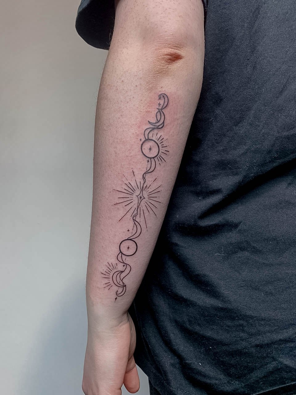Einfache Linien, filigrane Formen und schlichte Muster – all das macht ein Linework-Tattoo zu einer einzigartigen und stilvollen Wahl für diejenigen, die Ästhetik und Tiefe schätzen.