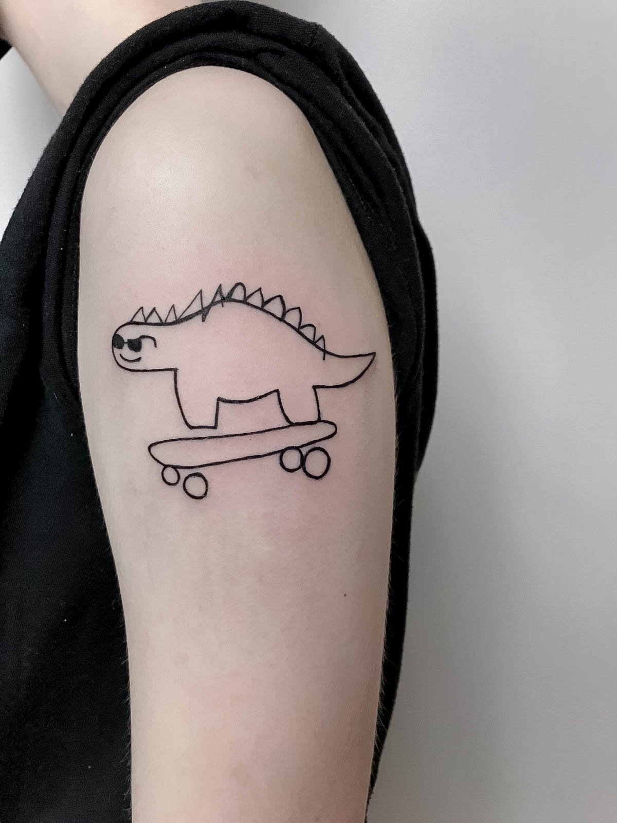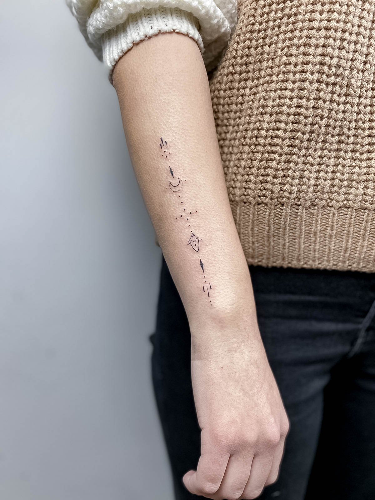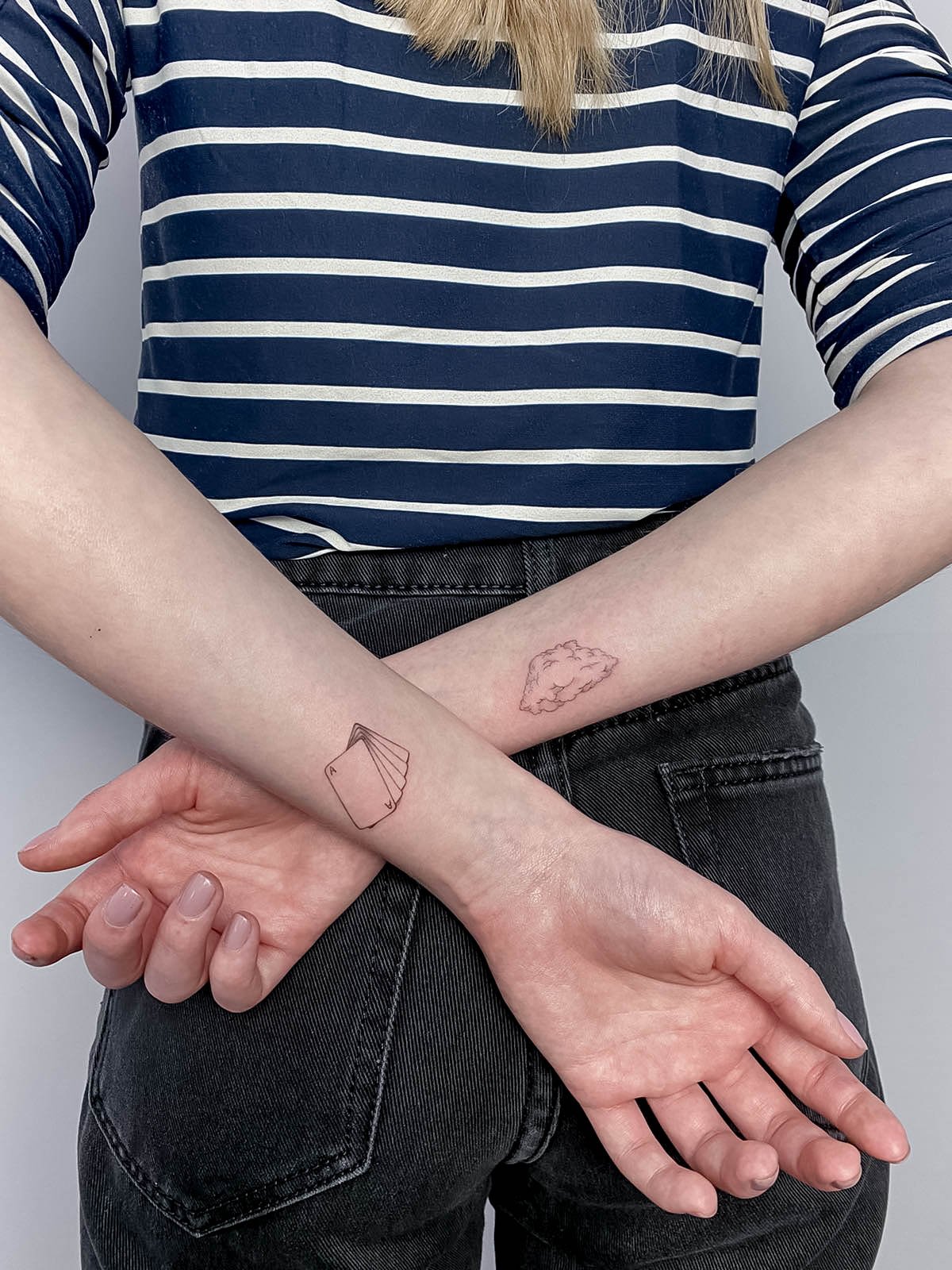Diese Tattoos dienen als eine Art visuelle Aussage, die keine Worte benötigt, um eine tiefere Bedeutung und den Charakter des Trägers zu vermitteln. Die Einfachheit der Linien und das Fehlen überflüssiger Details ermöglichen es, sich auf das Wesentliche zu konzentrieren – auf die Idee, die im Bild steckt.