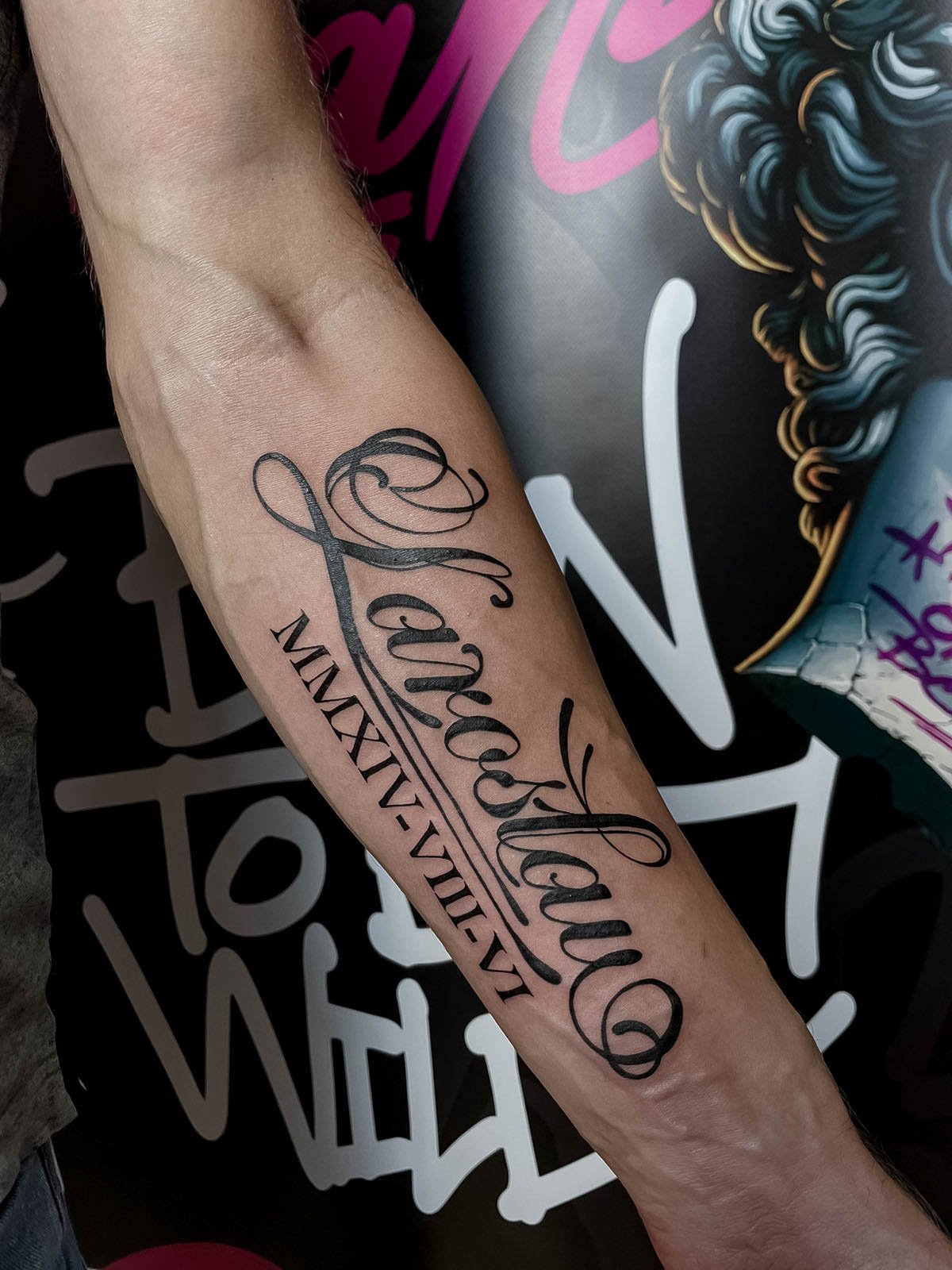 - Sätze, Zitate und Wörter sind eine weitere beliebte Wahl für Unterarm-Tattoos. Lettering kann in verschiedenen Stilen ausgeführt werden, von strengen Schriften bis hin zu freieren und kreativeren. Das Wichtigste ist, eine Phrase zu wählen, die für Sie wirklich von Bedeutung ist.