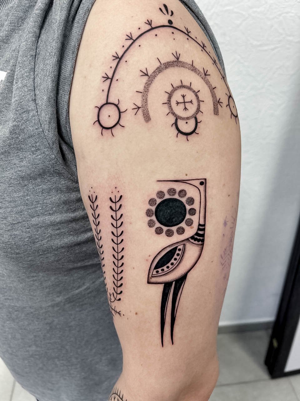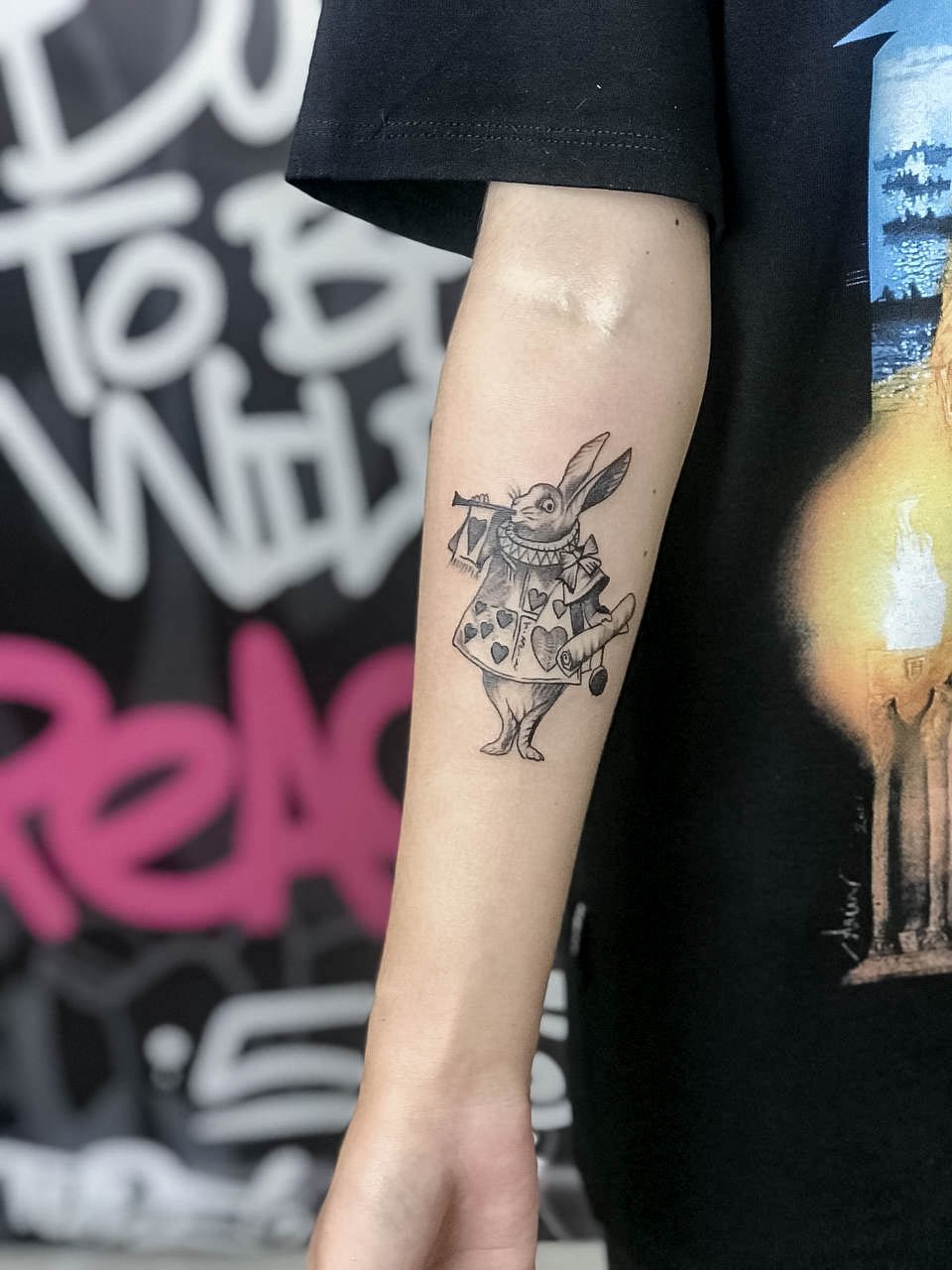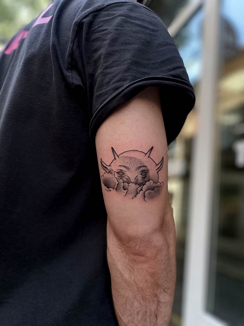 Sie können Ihre Ideen einbringen, und der Tätowierer wird Ihnen helfen, diese zu realisieren, indem er seine künstlerische Interpretation hinzufügt. Hierbei ist es wichtig, keine Angst vor Experimenten zu haben – der Surrealismus liebt Mut und unerwartete Entscheidungen.