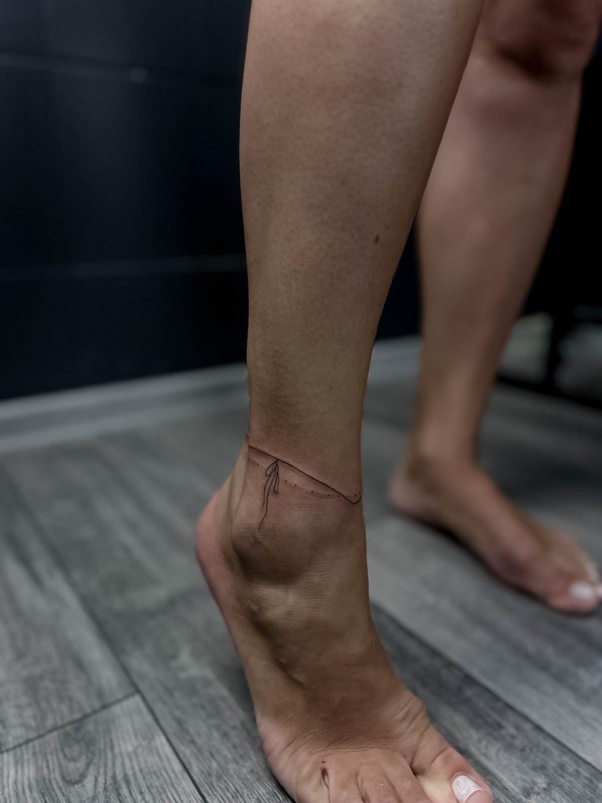- Minimalismus: Kleine, zarte Tätowierungen, die Symbole, Sterne, Herzen oder einfache Linien enthalten können. Minimalismus ist ein Trend, der für diejenigen relevant bleibt, die dezente und elegante Tattoos bevorzugen. Solche Tattoos befinden sich oft am Knöchel oder Fuß und verleihen dem Erscheinungsbild Leichtigkeit und Raffinesse.