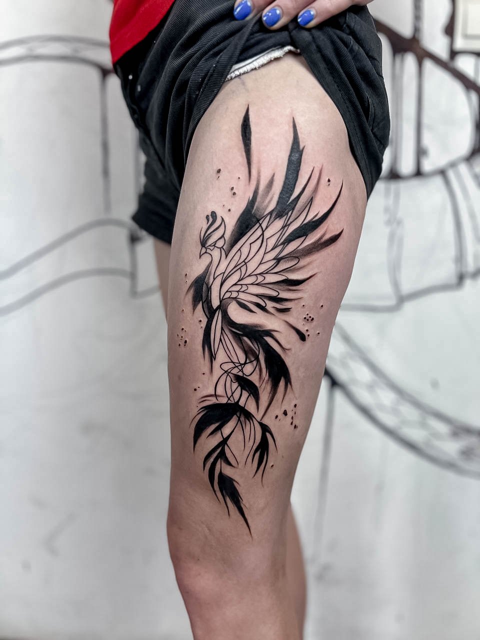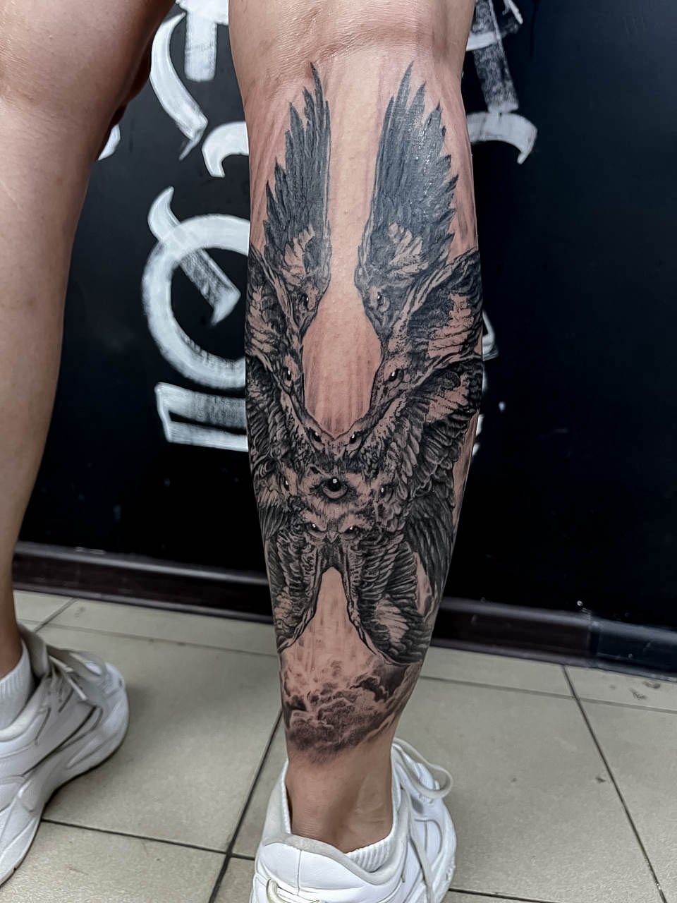 - Vögel: Darstellungen von Vögeln wie Schwalben, Eulen oder Kolibris werden oft von Frauen für Tätowierungen am Bein gewählt. Vögel symbolisieren Freiheit, das Streben nach neuen Höhen und Unabhängigkeit. Vogel-Tattoos können in verschiedenen Stilen ausgeführt werden – von Minimalismus bis Realismus, was es ermöglicht, sie an jeden Geschmack anzupassen.