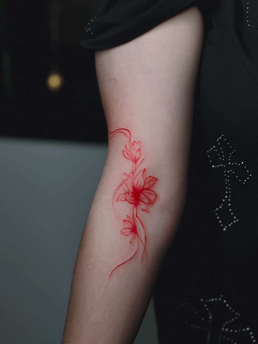 #Tattoo auf dem Arm #Blumen #Schmetterling
