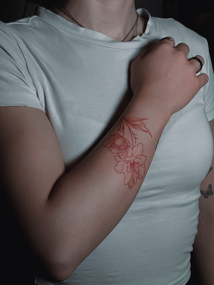 #Flowers #Tattoo #Red tattoo #Fine line #Colored tattoo