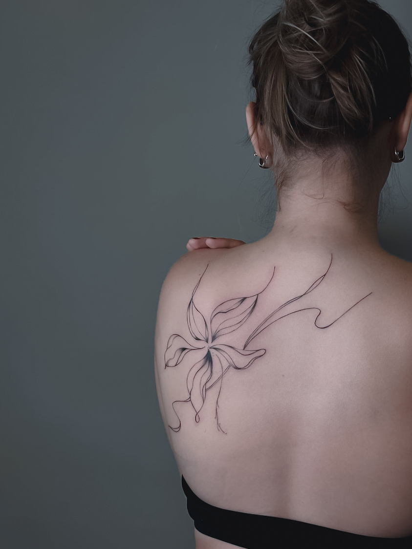 #Linework #Tattoos #Rückentattoo #Lilie #Blume